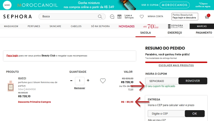 Usar um cupom Sephora é um processo simples e rápido, que pode ser feito em poucos cliques. Siga este guia para garantir que seu desconto seja aplicado corretamente: